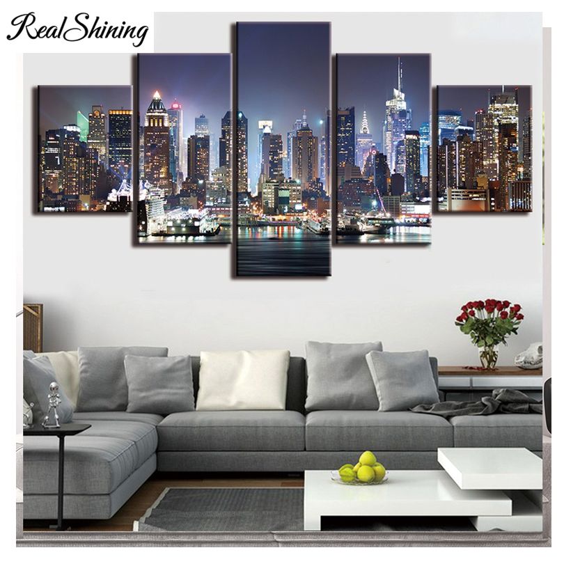 5diy 5 Pcs Peinture Au Diamant Nuit New York City Cross Stitch Complete Broderie Diamant Mosaique Modele Broderie Perlee Cadeau