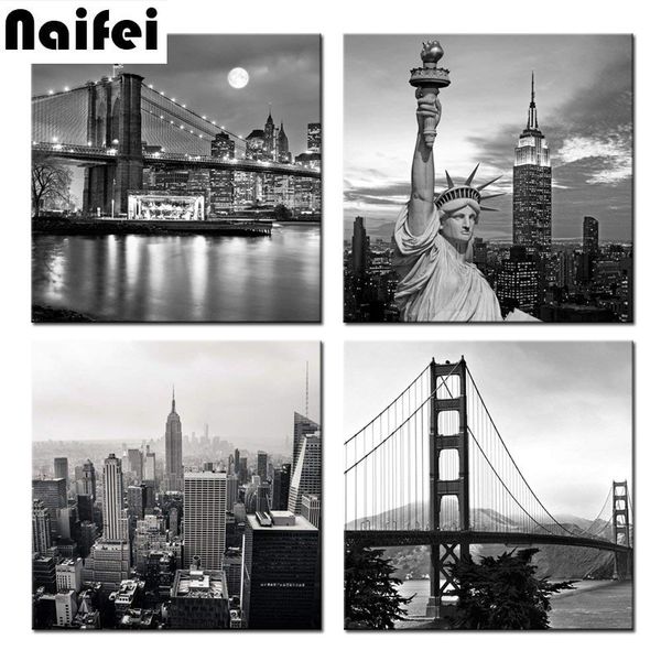 Acheter Set Noir Et Blanc Art De Mur De New York Peinture 5d Diamant Peinture Broderie Point De Croix Decor A La Maison Bricolage Resine Resine