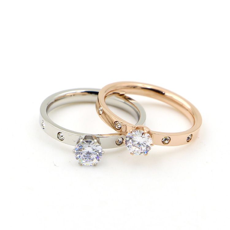 En Gros 1 Diamant 6 Griffe Grand Diamant 4 Petit Diamant Bague En Or Rose Titane Acier Plaque 18k Bague En Or Rose Les Femmes Aiment Cadeau