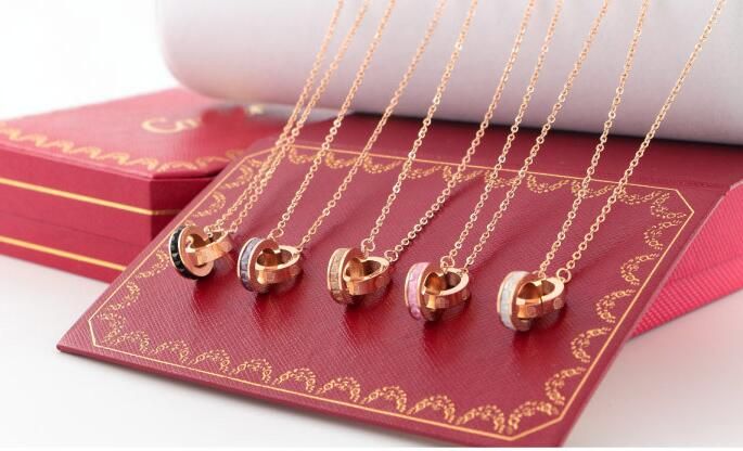 Nouveau Petit Diamant Carre Chiffres Romains A Double Boucle Collier Court Femme Coreenne Mode Titane Acier Plaque Or Rose Chaine De Clavicule