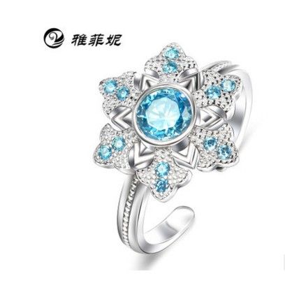 925 Incrustation D Argent Diamant Bleu Diamant Fleur Bague De Dame 168