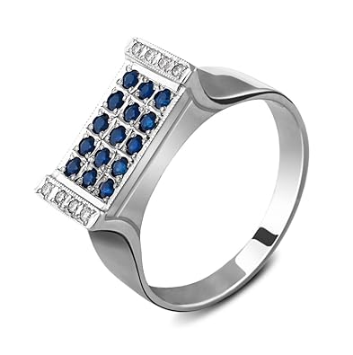 Bague Sceau En Or Blanc 18 Kt Avec 8 Diamant Et 15 Zafiros