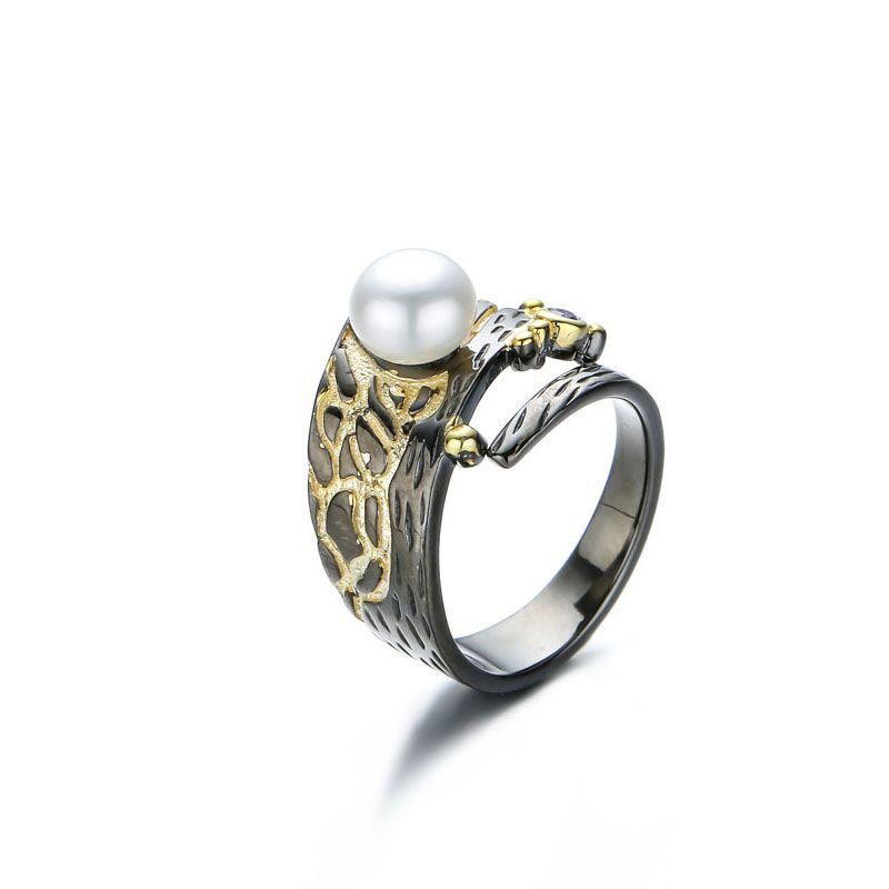 Radhorse Bagues Argent 925 Pour Femmes Fine Bijoux Perle Naturelle Perle Baroque Retro Bague Argent Reglable Noir