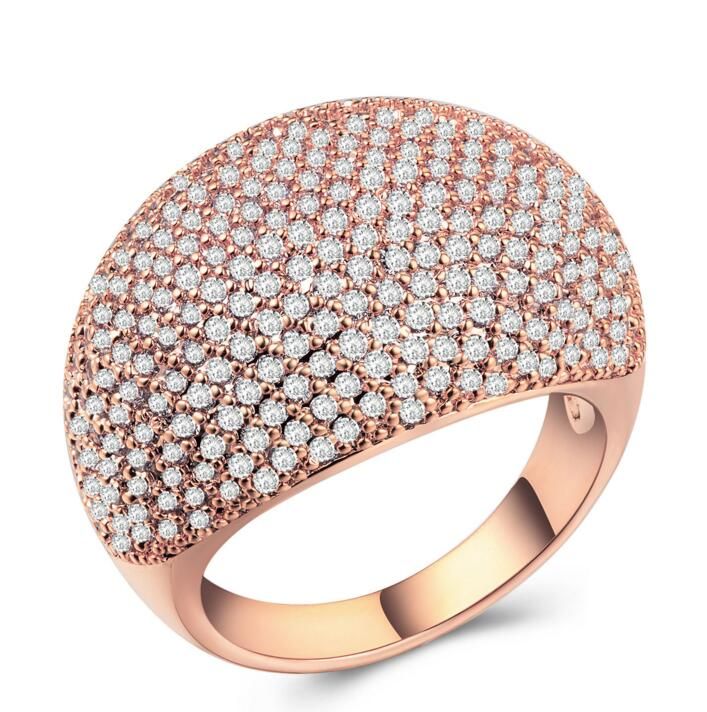Diamant Accent Dome Bague Fine Polish Full Pave Zircon Cubique Grandes Femmes Creuses Bague De Mariage Bague De Declaration