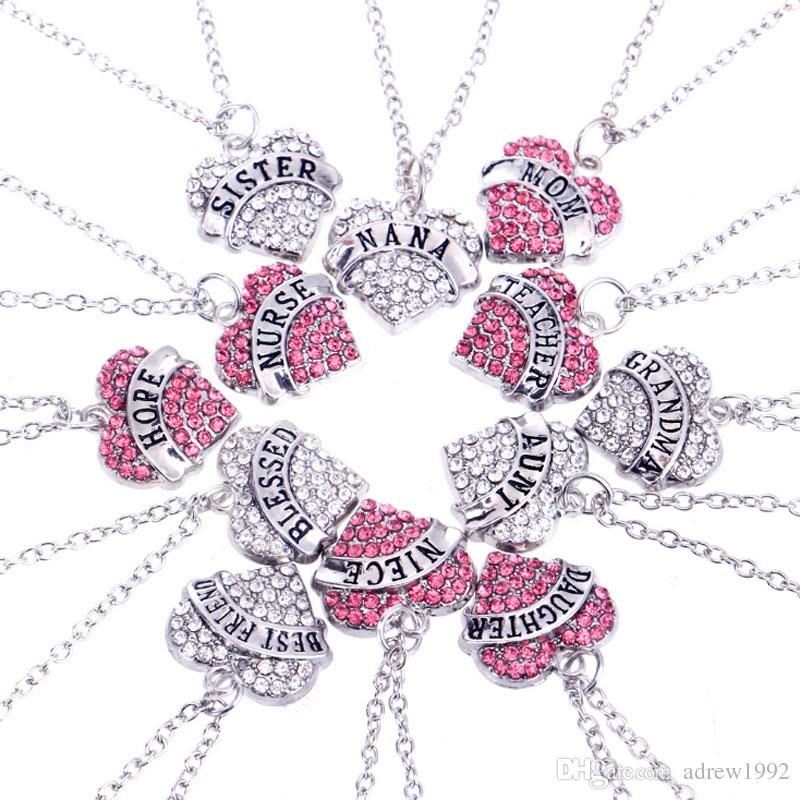 45 Types Collier De Diamant Amour Coeur Membres De La Famille Collier De Lettres Anglais Collier Pendentifs De Diamant Coeur Peche En Vente