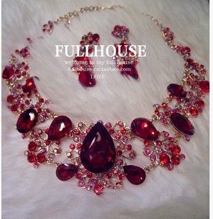 Accessoires De Mariee Diamant Rouge Collier En Trois Pieces Boucles D Oreilles Couronne Robe De Mariee Coreenne Accessoires Bijoux