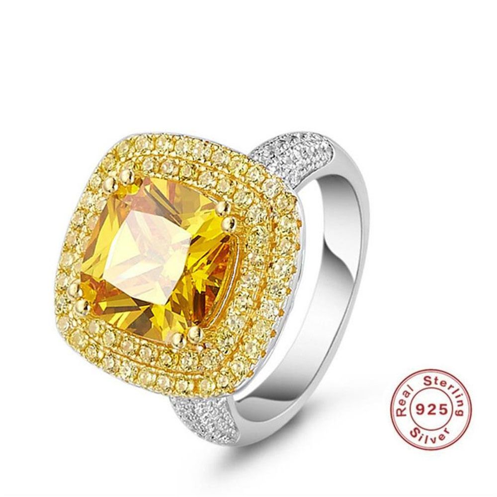 2018 Classic Extravagant S925 Argent Anneau Impregne Femmes Gros Diamant Jaune Princesse Forme Fine Bijoux Anneaux Y1892705