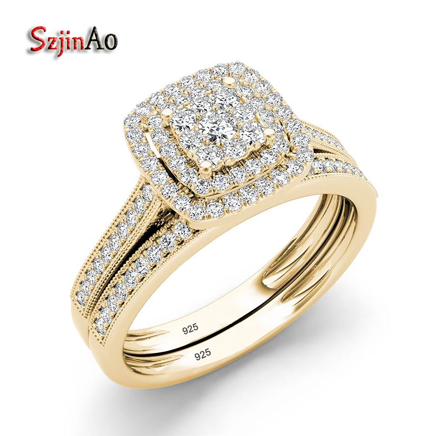 Szjinao 925 Sterling Argent Anneau Ensembles De Fiancailles De Bijoux De Fiancailles Diamant Diamant Jaune Or Couleur Anneaux Pour Les Femmes Cadeau