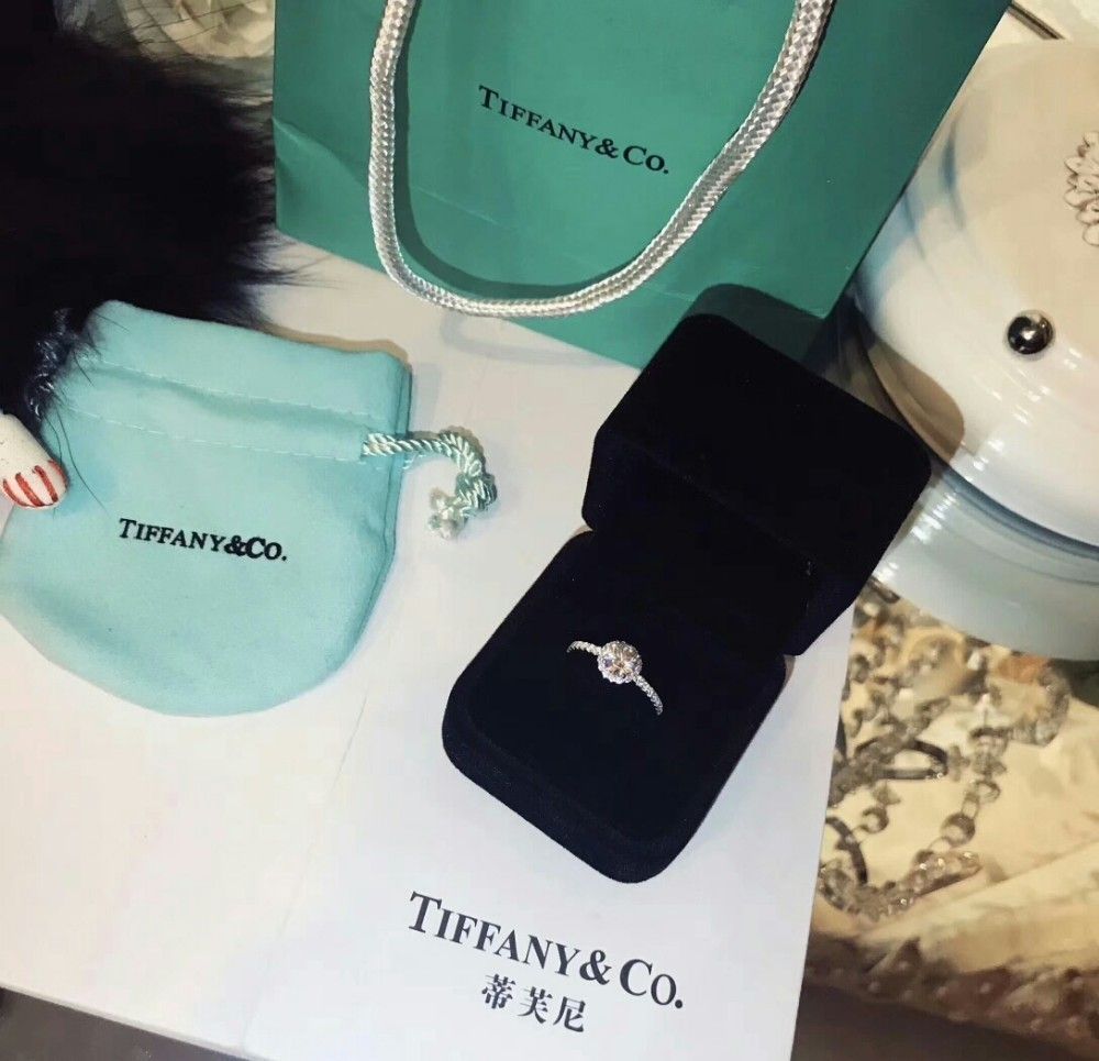 Tiffany Co Bague En Platine Ornee D Un Diamant 1 51 Carat Entoure De Diamants