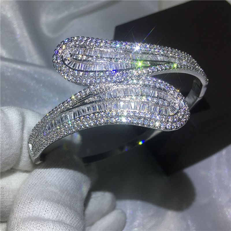 Bracelet Avec Baguette En Forme De Diamant Et De Diamants Grand Bracelet Scintillant S925 Accessoires Pour Femmes Remplis D Argent