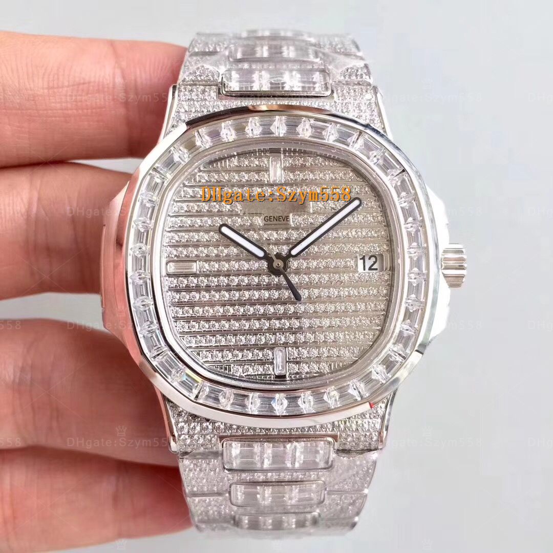 Montre De Luxe Meilleure Qualite Nautilus Montre Diamant 5719 40mm Mouvement Automatique Etanche Homme Montre Ensemble Avec Diamants Balayage Deplacer