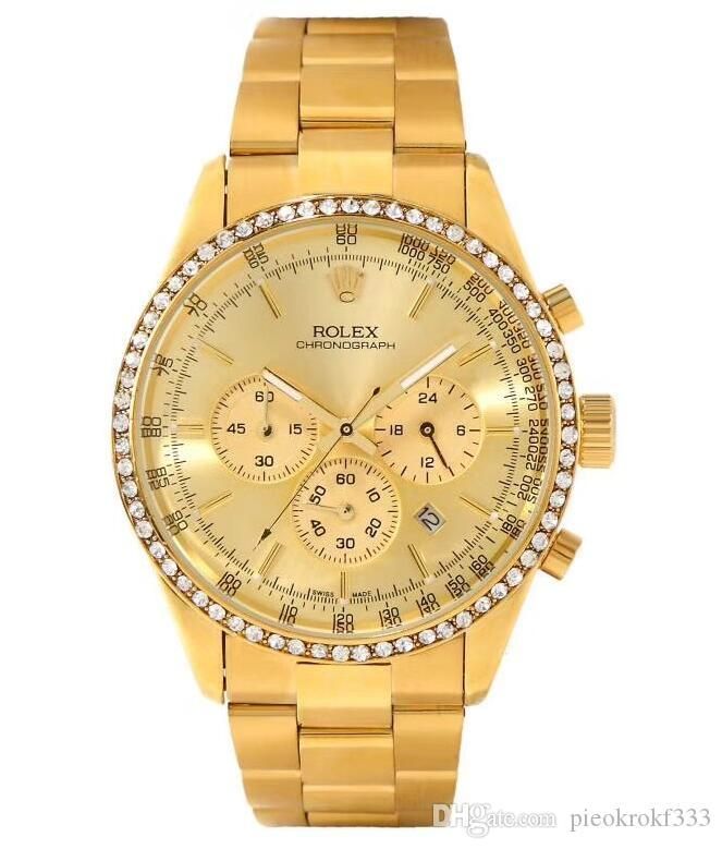 Hommes 58 Montre Diamant Bande Inoxydable Or Acier Acheter