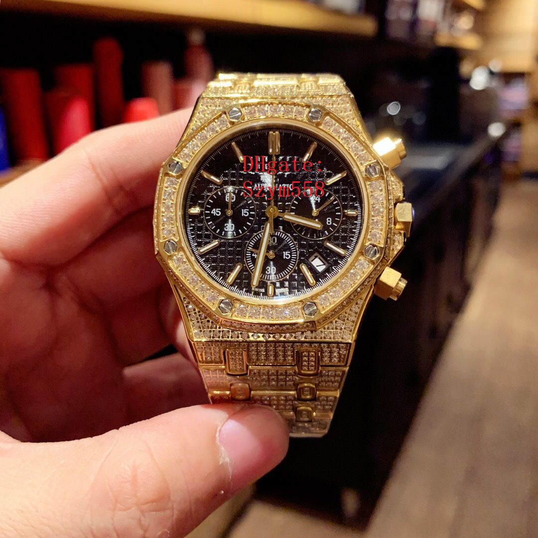 Montre De Luxe Montre De Diamant Complete De Haute Qualite Vk Quartz Chronographe Mouvement Sweep Move 316 En Acier Inoxydable Set Diamond Silver