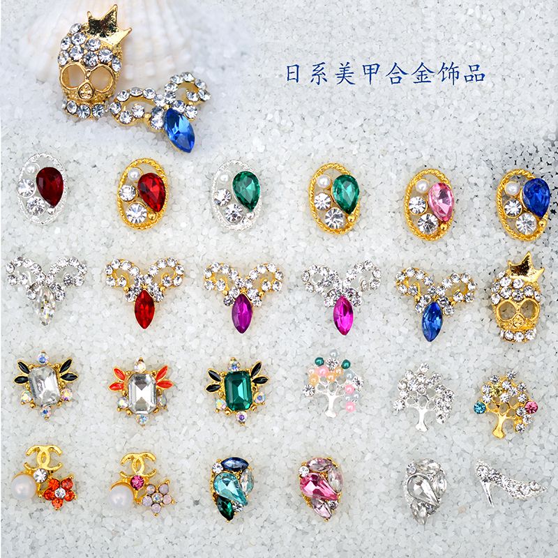 Japonais Beaux Ornements En Metal Colore Bijoux Diamant Nail Art Decorations Strass Dropshipping En Gros 5pcs Ensemble