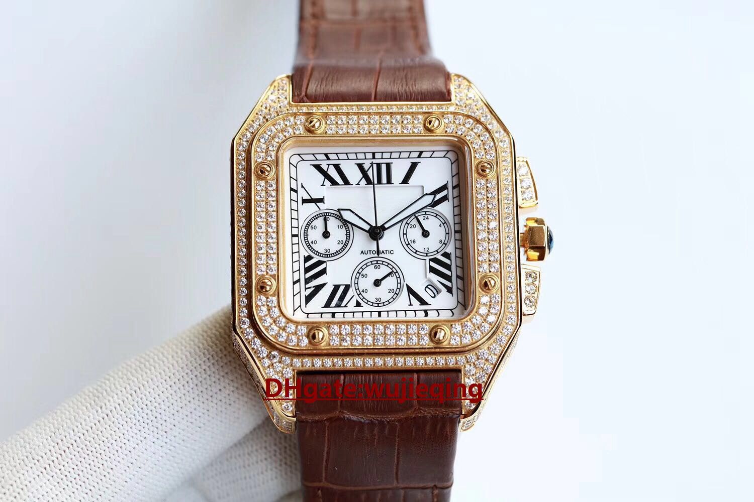 Diamant Montre 44mm Japonais Mouvement Suisse Vk Chronometrage Multifonctions Mouvement Haute Resistance En Verre Shell 904l En Acier