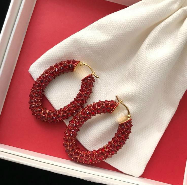 Createur Europeen Bijoux Ellipse Plein De Diamant Rouge Cerceau Femmes Banquet Accessoires De Mariage De Luxe Bijoux