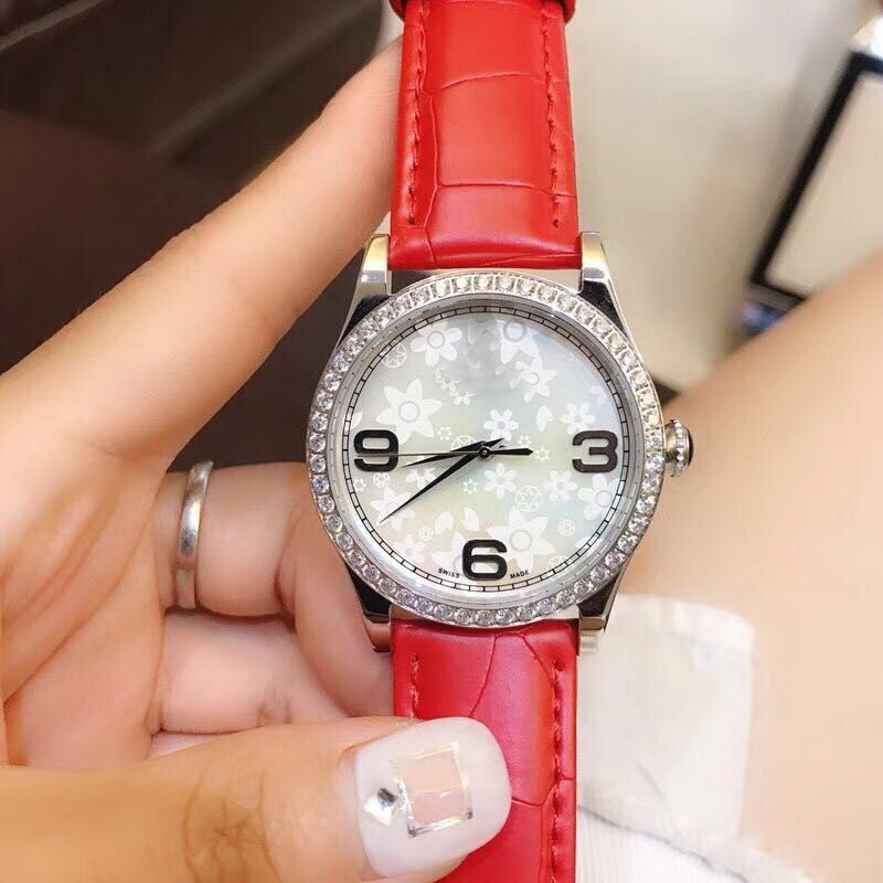 Diamant Rouge Lunette En Cuir Ceinture Montres Haute Qualite Quartz En Acier Inoxydable Femmes Montre Sport De Mode Marque Nouvelle Luxe Femmes