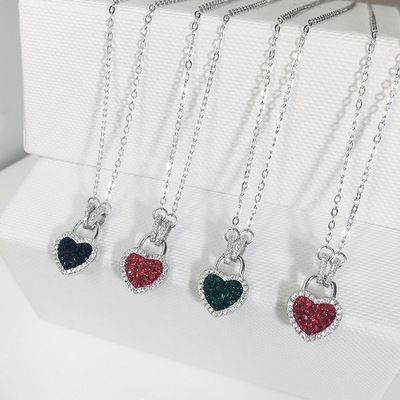 S925 Argent Sterling Diamant Rouge Rouge Double Face Amour Serrure Collier Femme En Forme De Coeur Diamant Europeen Et Americain Pendentif Coeur De