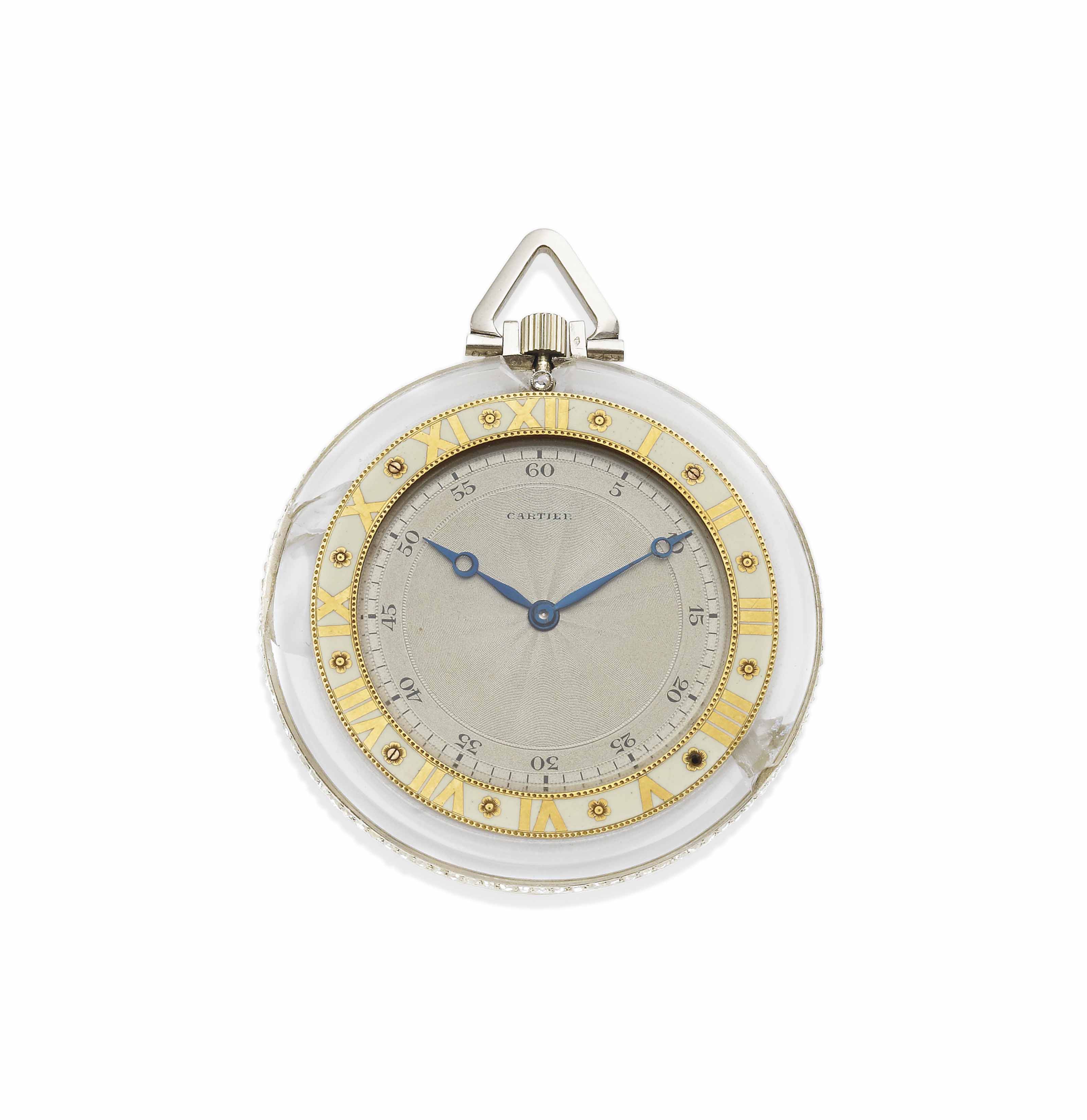 Montre De Poche Art Deco Cristal De Roche Et Diamants Par