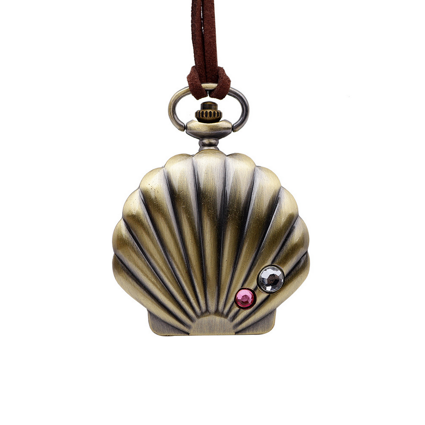 2018 Nouvelle Anime Sirene Diamant Montre De Poche Collier De Mode Retro Perle Shell Shell Bronze Montre De Poche D Etudiant