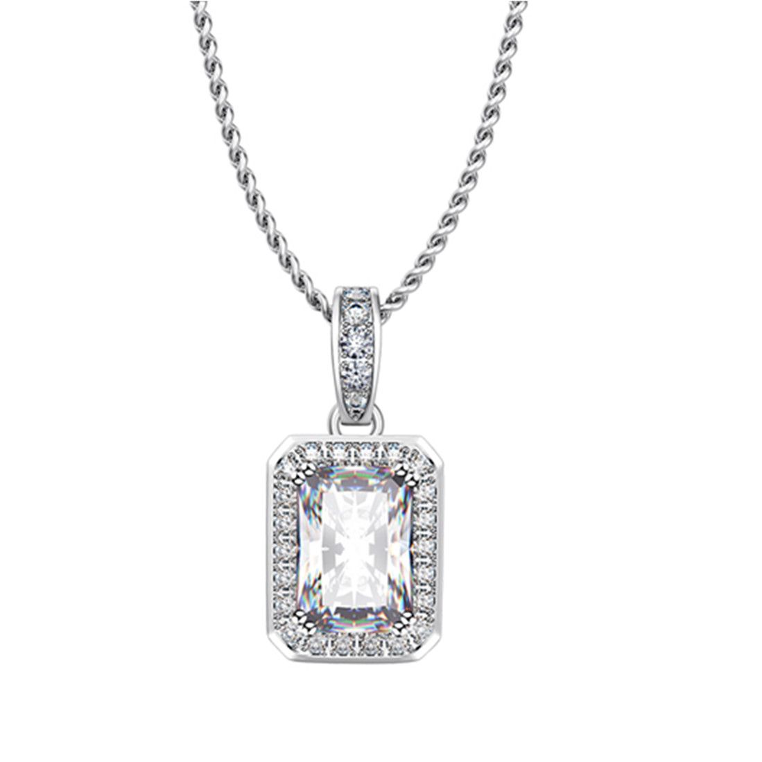 Femmes S925 Argent Diamant Pendentif Collier Haute Qualite Mode Elegant Sterling Grand Cz Diamant De Mariage Nice Bijoux Present