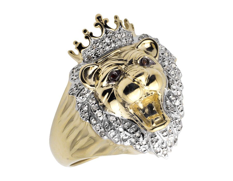 Bague Declaration De Diamant Avec Couronne De Roi Couronne En Or Jaune 10k 3d Tete De Lion Rugissant 0 50ct