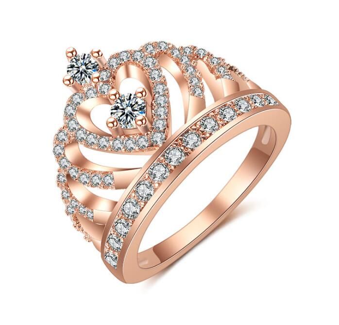 Mode Zircon Cristal Diamant Couronne Bague Femmes Rose Or Anneau Bagues De Mariage Bagues De Mariage Bijoux 2020 Vente Chaude