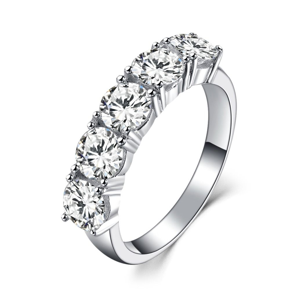 Bijoux En Gros 2 5ct Sterling Silver Bijoux Promotion Bague 5 Pierres Diamants Synthetiques Bague De Fiancailles Femmes De Mariage Classique S923