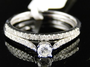 Details Sur Nouveau 10k Or Blanc Femmes Mariage Fiancailles Anneau Bague Diamant Ensemble
